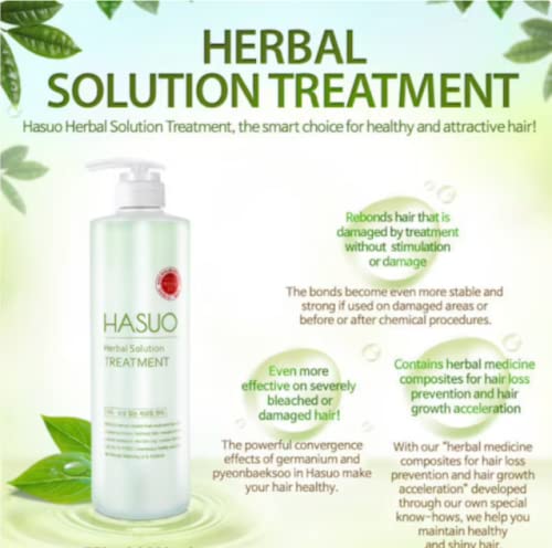 The HASUO Herbal Solution Hair Treatment was developed using in-house technical expertise. It combines a blend of herbal extracts, including Ginseng, Licorice, and Mulberry, to maintain healthy and glossy hair by balancing oil and moisture.